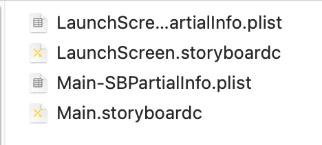 [Library] → [Developer] → [Xcode] → [Derived Data]를 통해서 해당 프로젝트에 접근한 다음 [Base.Iproj]를 보면 Main.storyboardc를 확인할 수 있었습니다. storyboardc는 storyboard가 컴파일된 패키지입니다.
