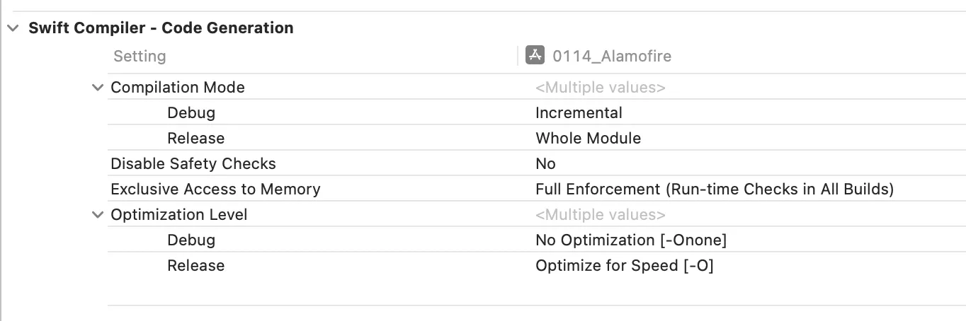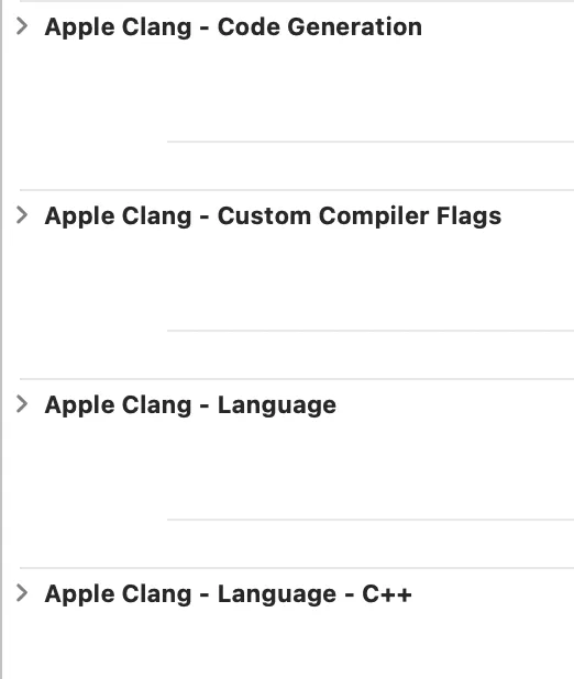 [Target] → [Build Settings]를 보면 Swift Compiler와 Clang이 각각 나뉘어져 있는 것을 확인할 수 있었습니다.