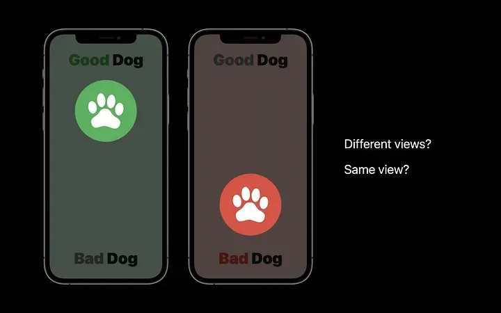 두 방법 모두 가능하지만, SwiftUI에선 일반적으론 두 번째 접근 방식을 권장하는데, 이는 기본적으로 뷰의 Identity를 유지하는 것이 lifetime과 state를 보존하는데 도움이 되기 때문입니다.