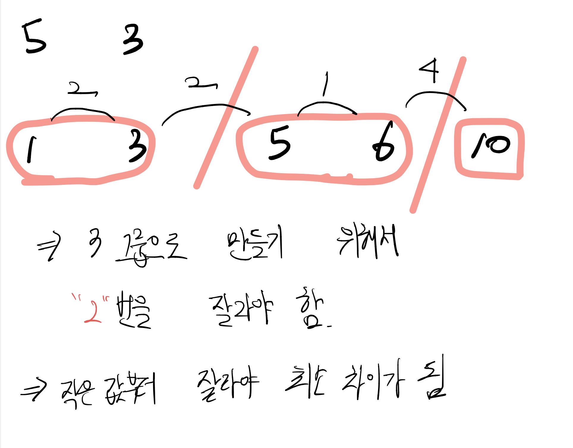 그 뒤 잘라야하는 조의 개수만큼 앞에서부터 높이를 더해주면 됩니다.