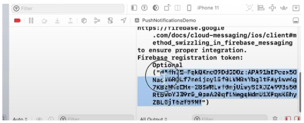 FCM 토큰은 앱을 실행했을 때 콘솔에 나타나는데, 실기기에서만 테스트가 가능하기 때문에 실기기를 연결하고 진행해주셔야 디바이스 토큰값을 받아올 수 있습니다 !