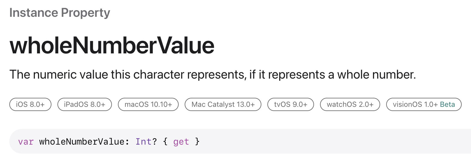 wholeNumberValue란 만약 Character가 whole number라면 Int로 변경해주는 프로퍼티입니다.